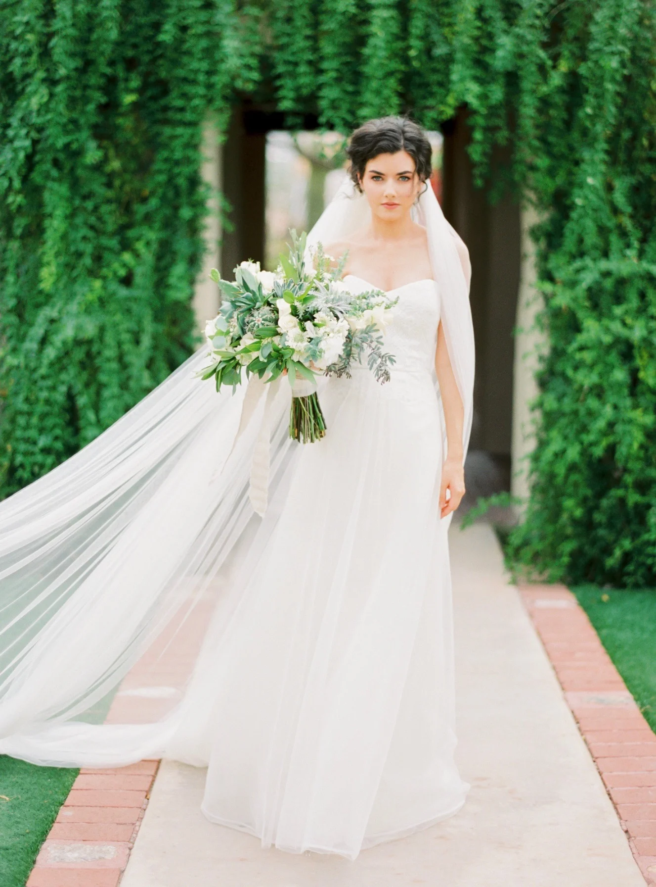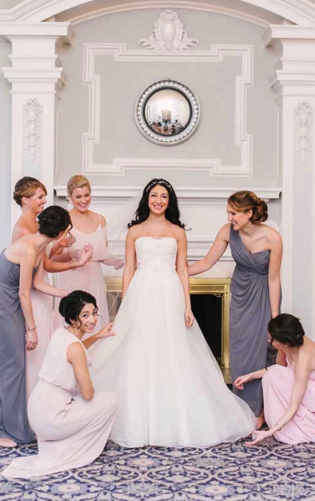 Carolyn gown on lovely bride Sara featured in Wedluxe Magazine